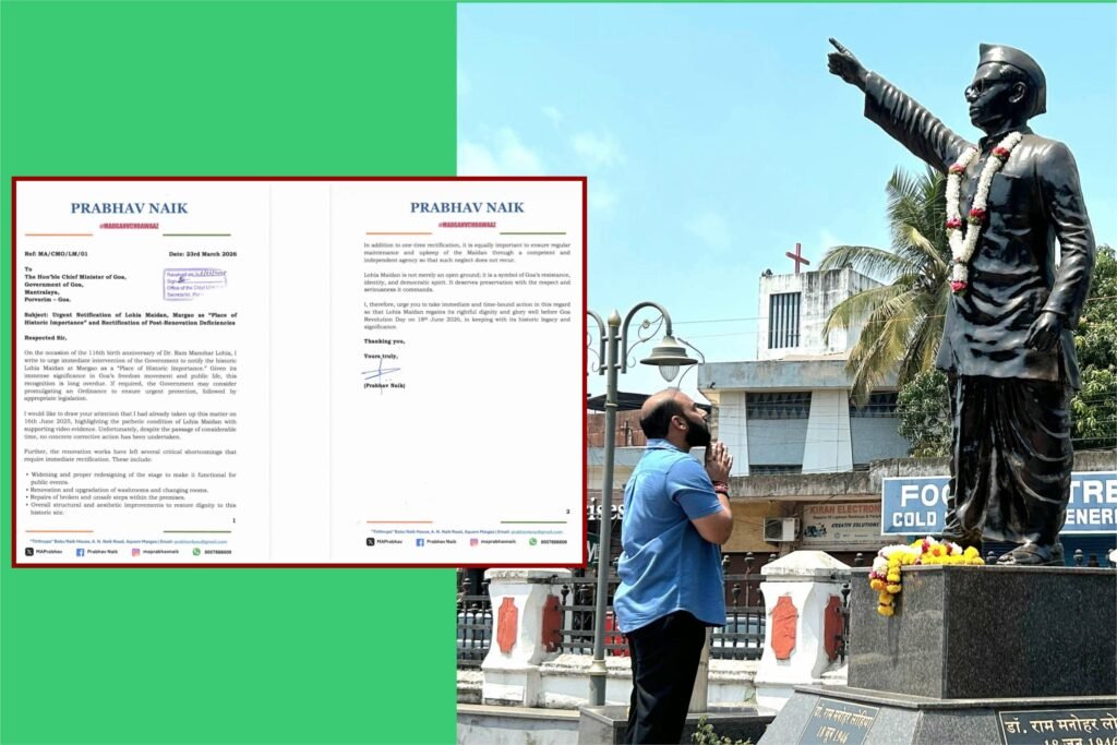 Prabhav Naik has urged the Government of Goa to immediately notify Lohia Maidan, Margao as a “Place of Historic Importance,” highlighting its pivotal role in Goa’s freedom movement and public life. He stressed that such recognition is long overdue and, if necessary, should be expedited through an Ordinance followed by legislation.